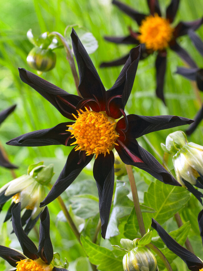 A gorgeous garden dahlia, Veronne's Obsidian is a deepest red, almost black velvety star dahlia that blooms on compact plants.