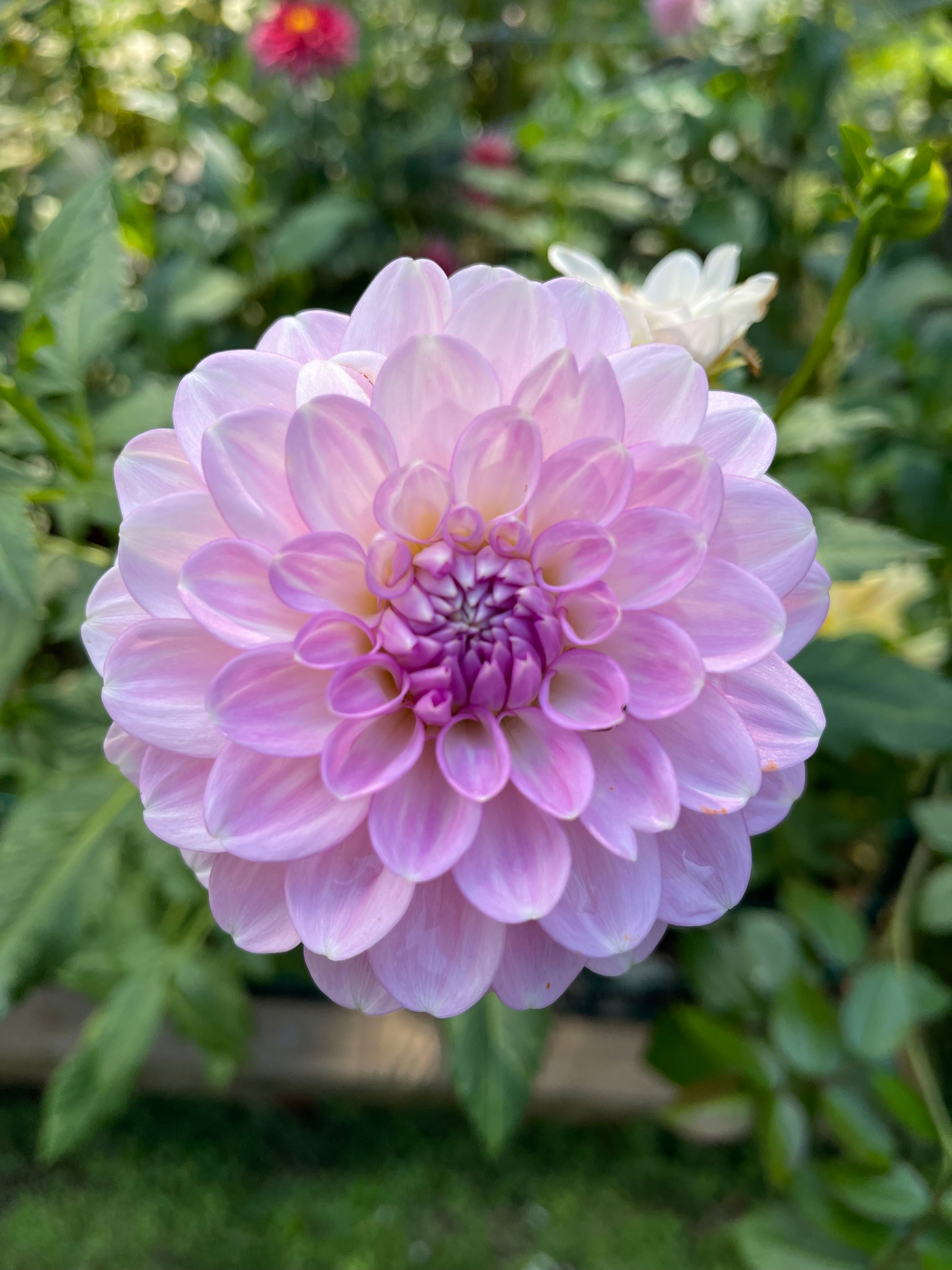 I shouldn't play favorites, but Janick's Symphony checks all the boxes for me! A beautiful blush tone formal decorative on the smaller side, with a reliable closed center, and always one of the first to eye up, Janick's Symphony produces well throughout the season on a mid size 4.5' plant. Janick also makes great tubers which store well.